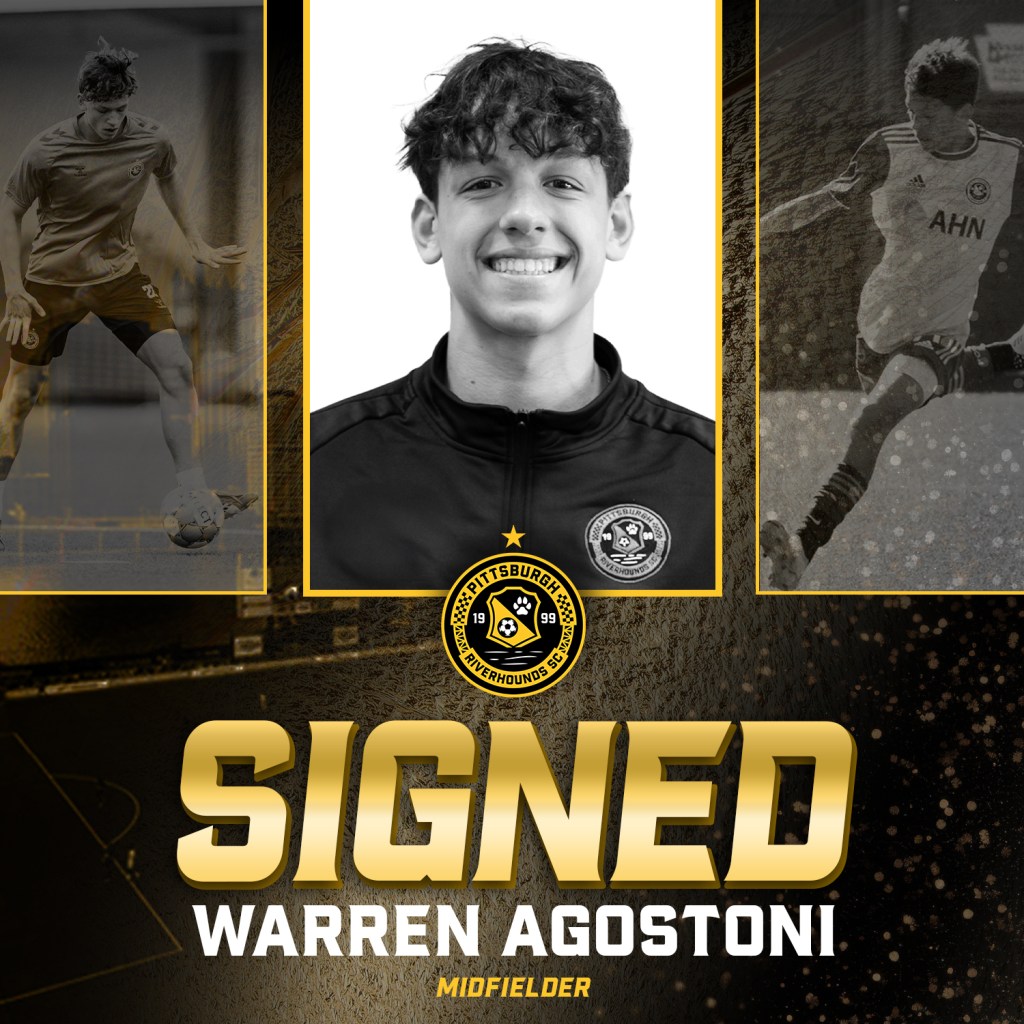 PITTSBURGH (Jan. 28, 2026) — Pittsburgh Riverhounds SC has signed midfielder Warren Agostoni to a USL Academy contract, making him the latest player to come up through the Riverhounds Development Academy to earn a spot with the club’s First Team. The deal is pending USL and U.S. Soccer approval.
